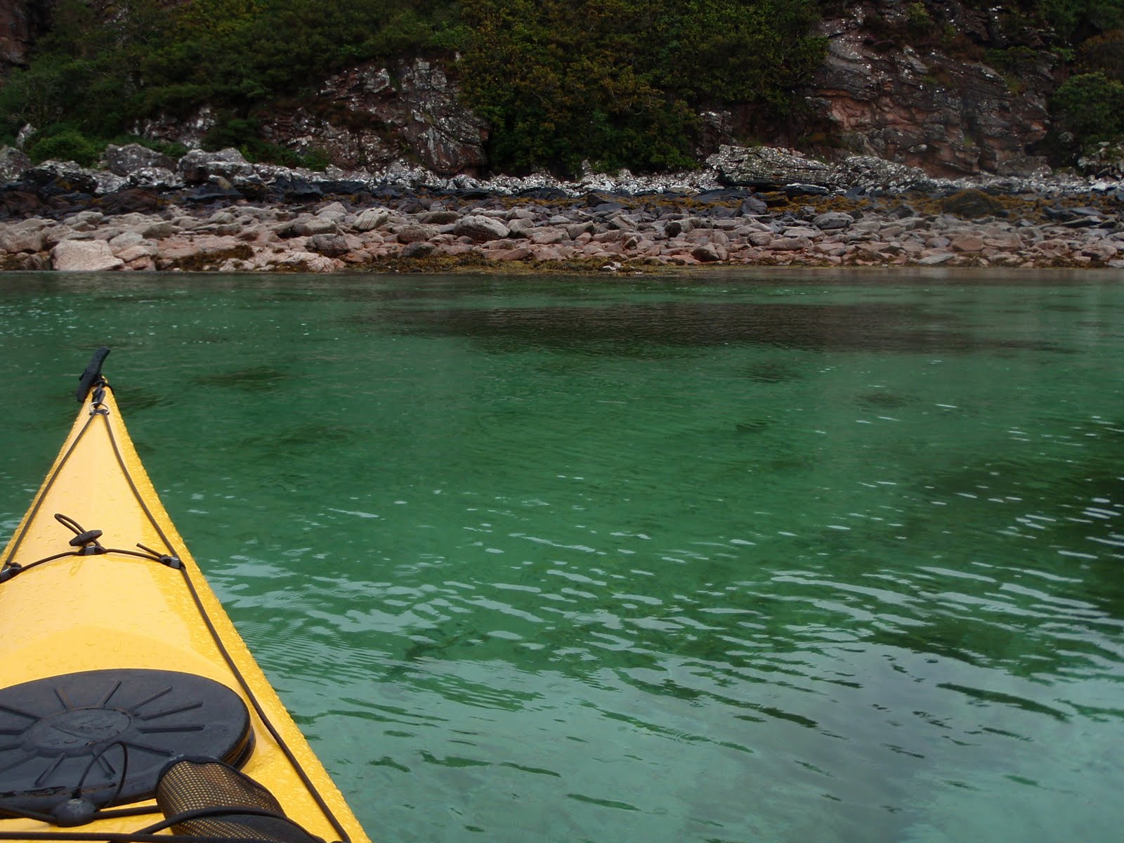 Soon after leaving Applecross Bay the centre of one of the low pressure systems arrived. The wind died to a complete calm and the rain just hammered down. As (unusually in Scotland!) the heavy rain wasn't wind-blown it was actually quite pleasant to paddle along with the hiss of raindrops hitting the sea the only sound.