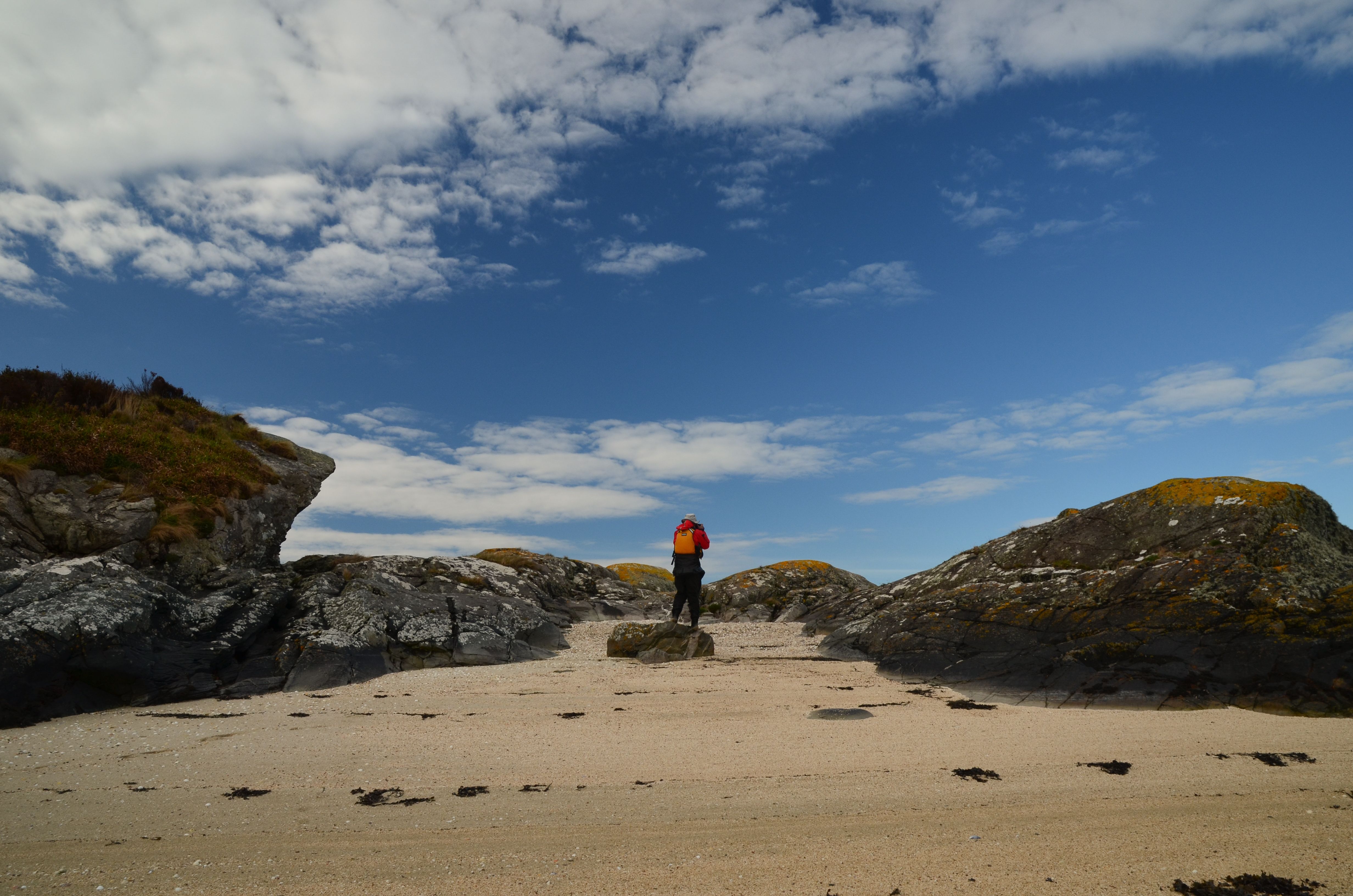 Approaching Pabay the wind seemed to ease a little and we dropped our sails to paddle into the tiny harbour area. Donny had motored along to Broadford in his F-RIB and made a direct crossing from there to Pabay; he had a pretty wet ride!